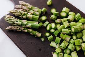 Chop the asparagus stalks into pieces about ½ inch thick