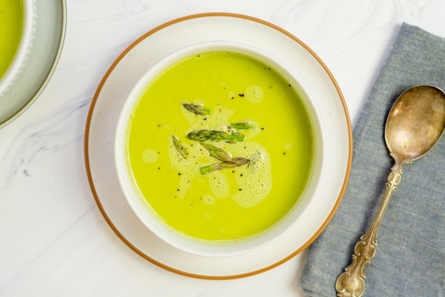 Steam the asparagus tips to add as garnish in soup, along with another sprinkle of Parmesan and serve